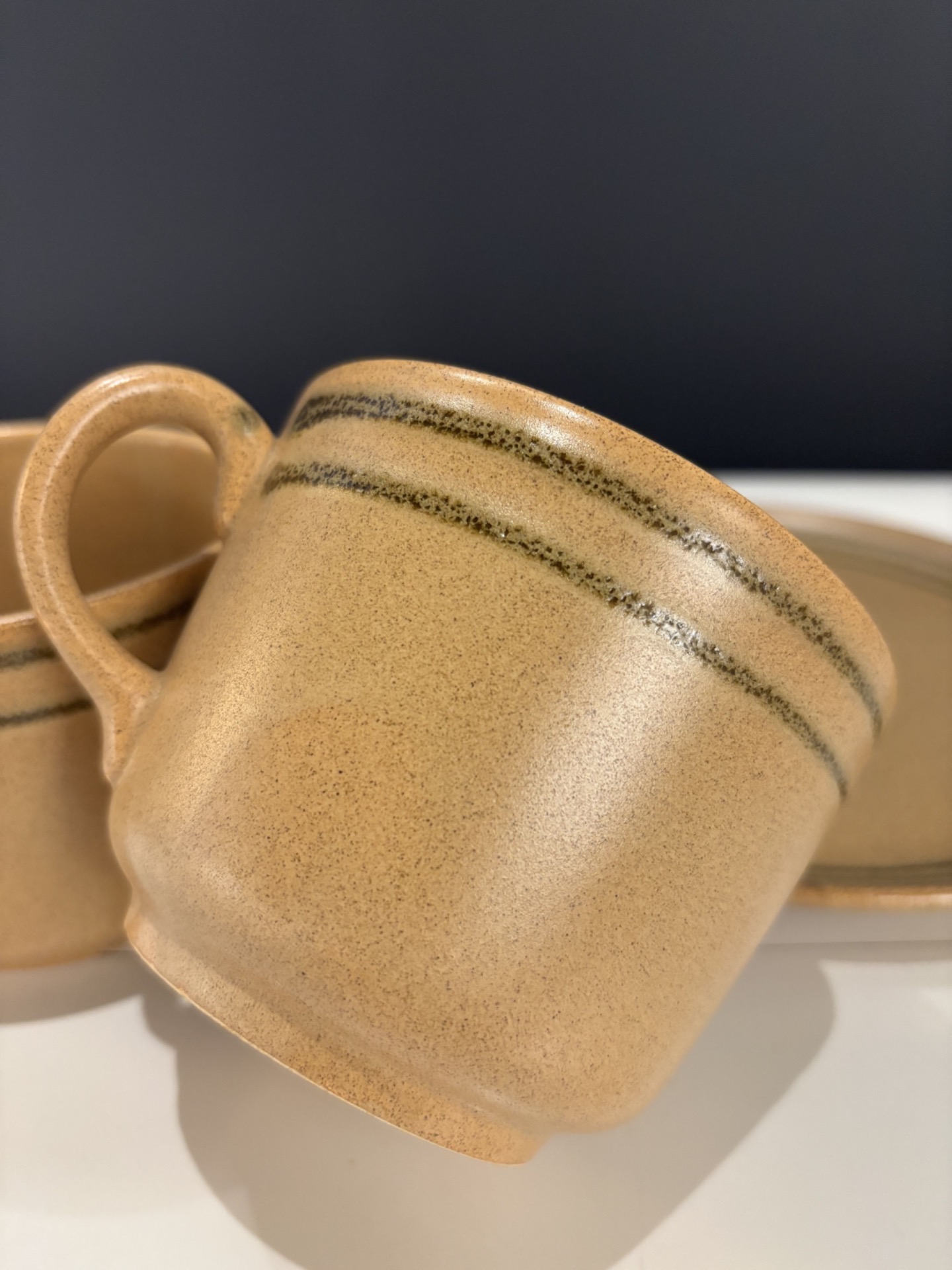 La forme est simple, stable, pensée pour un usage quotidien. L'émail légèrement nuancé met en valeur la matière et donne à chaque pièce un caractère subtil.