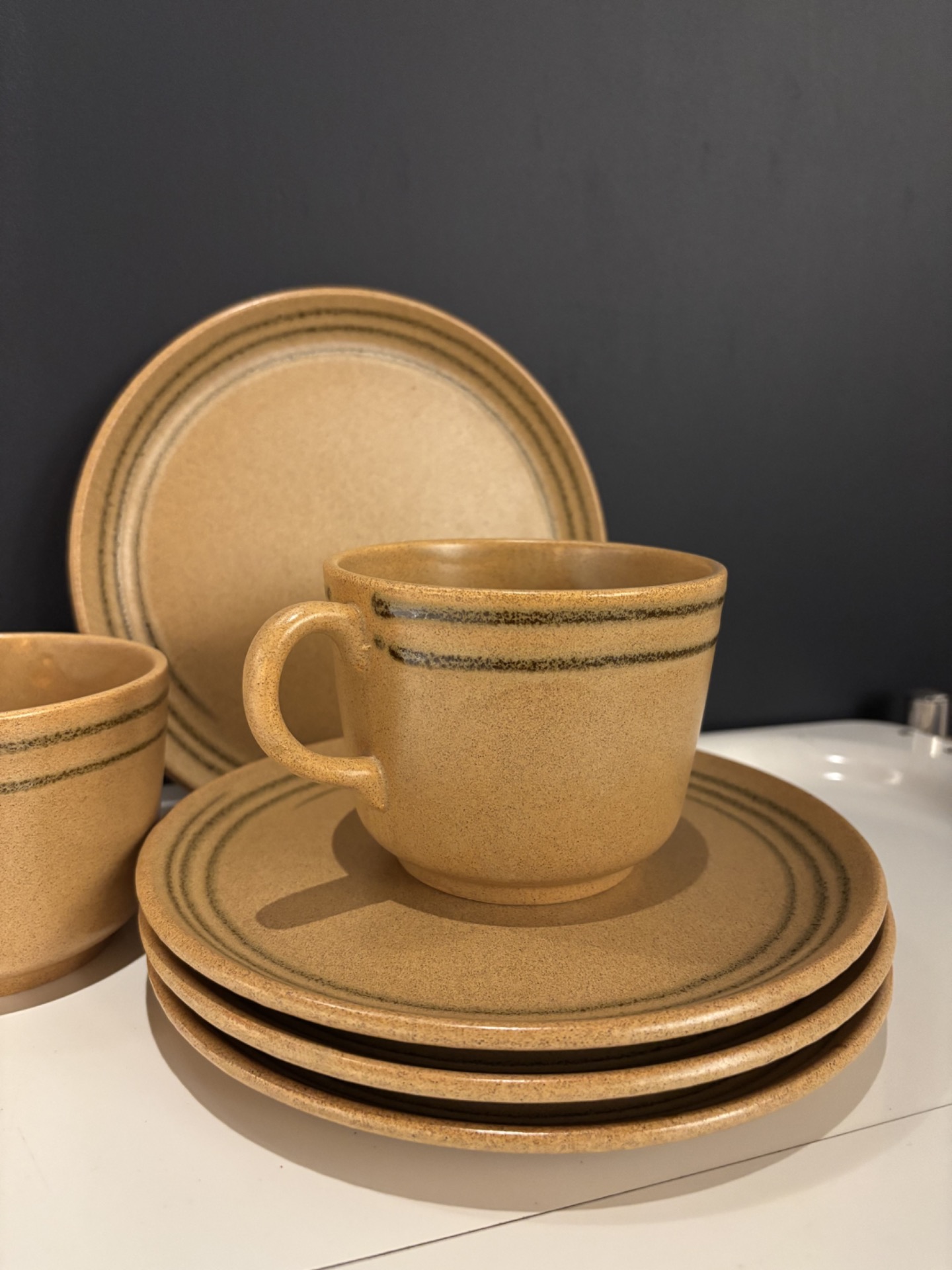 Ces tasses peuvent être utilisées seules ou associées aux assiettes en grès du même motif, pour une table cohérente et équilibrée.