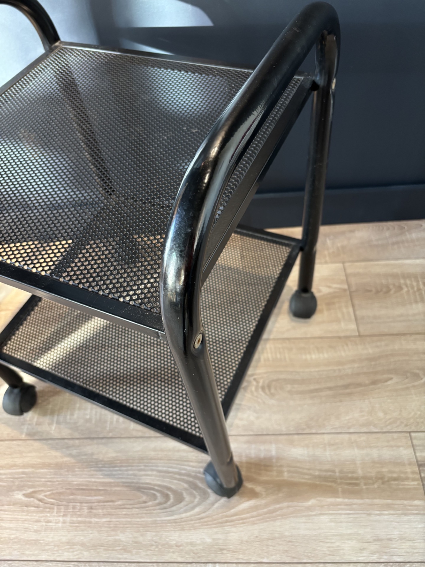 Cette desserte roulante en métal noir séduit par son design fonctionnel et son allure résolument vintage.