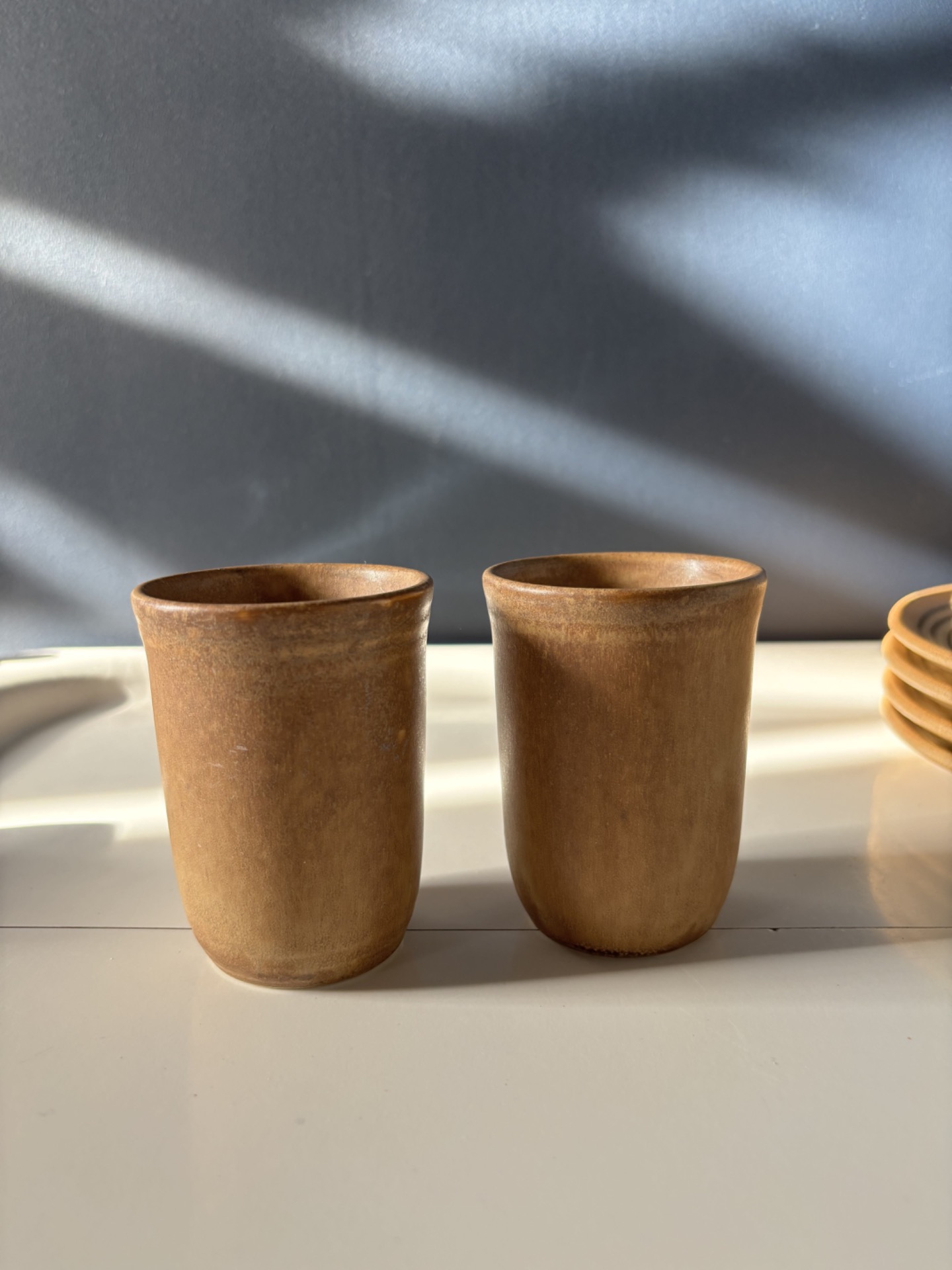 Lot de deux gobelets en grès à la forme simple et bien proportionnée.