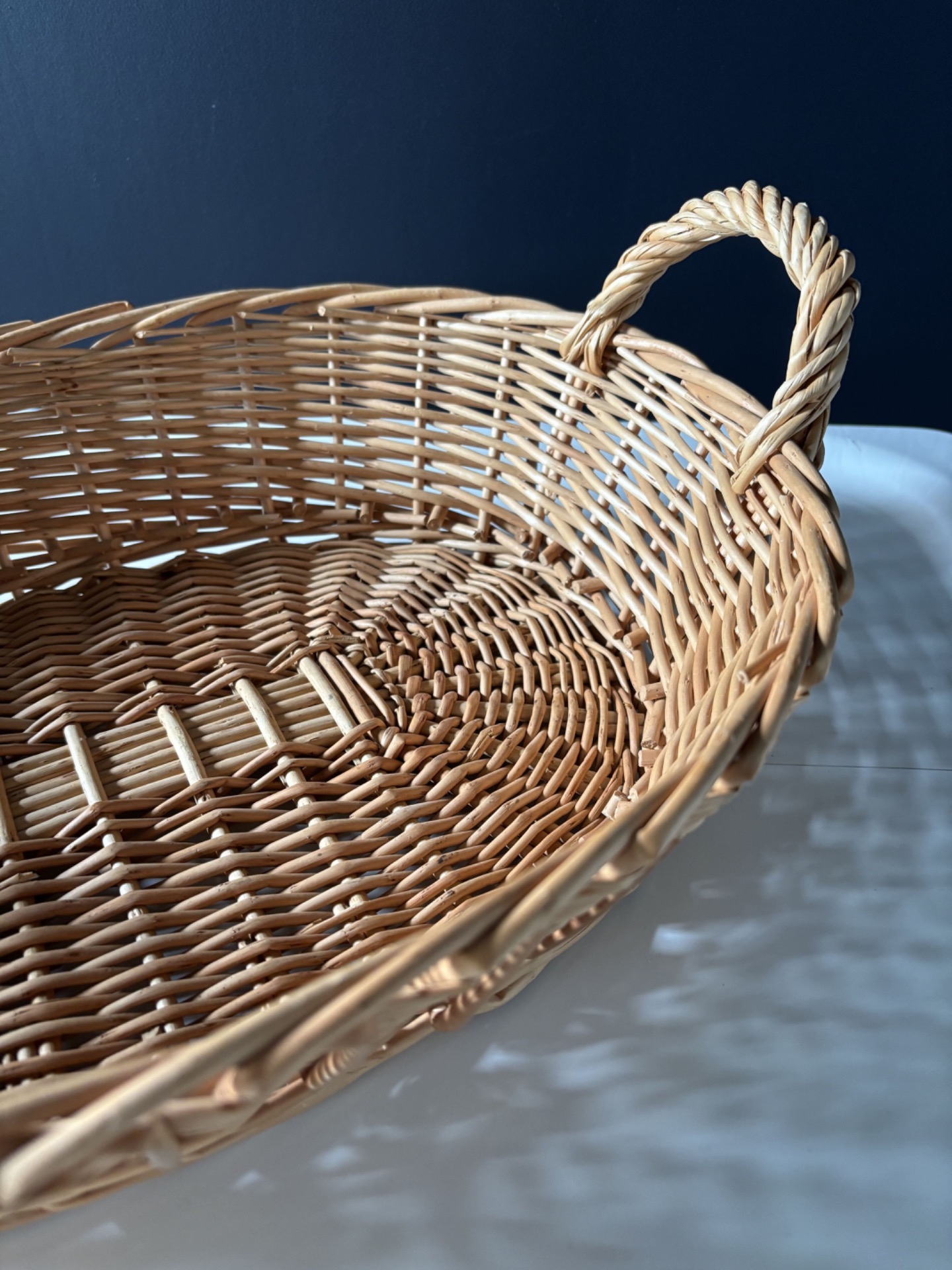 Design : Sa forme ovale et ses anses tressées robustes lui confèrent une grande praticité et une allure intemporelle. Les motifs de tressage au fond du panier ajoutent une délicatesse supplémentaire.