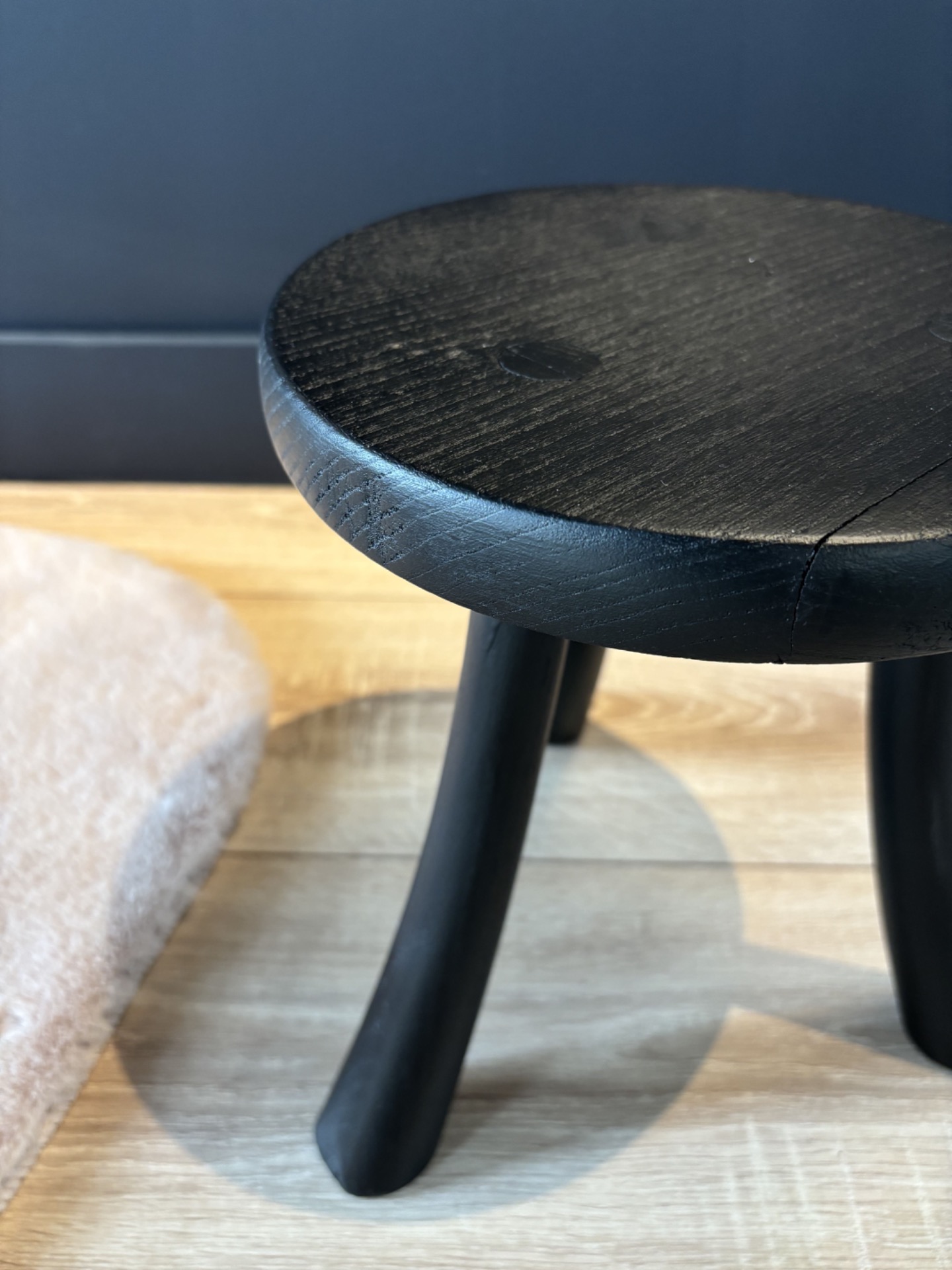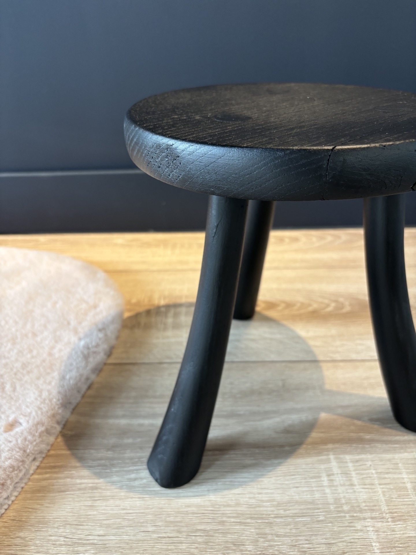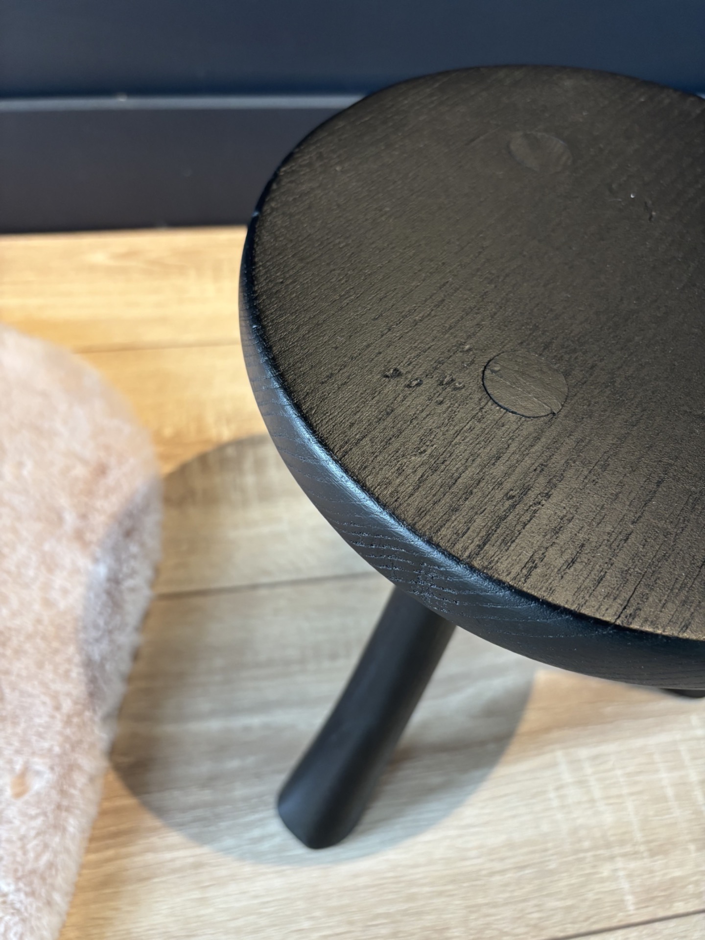 Petit tabouret en bois massif teinté noir, au design sobre et intemporel.