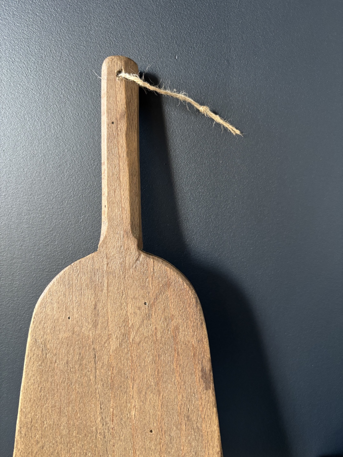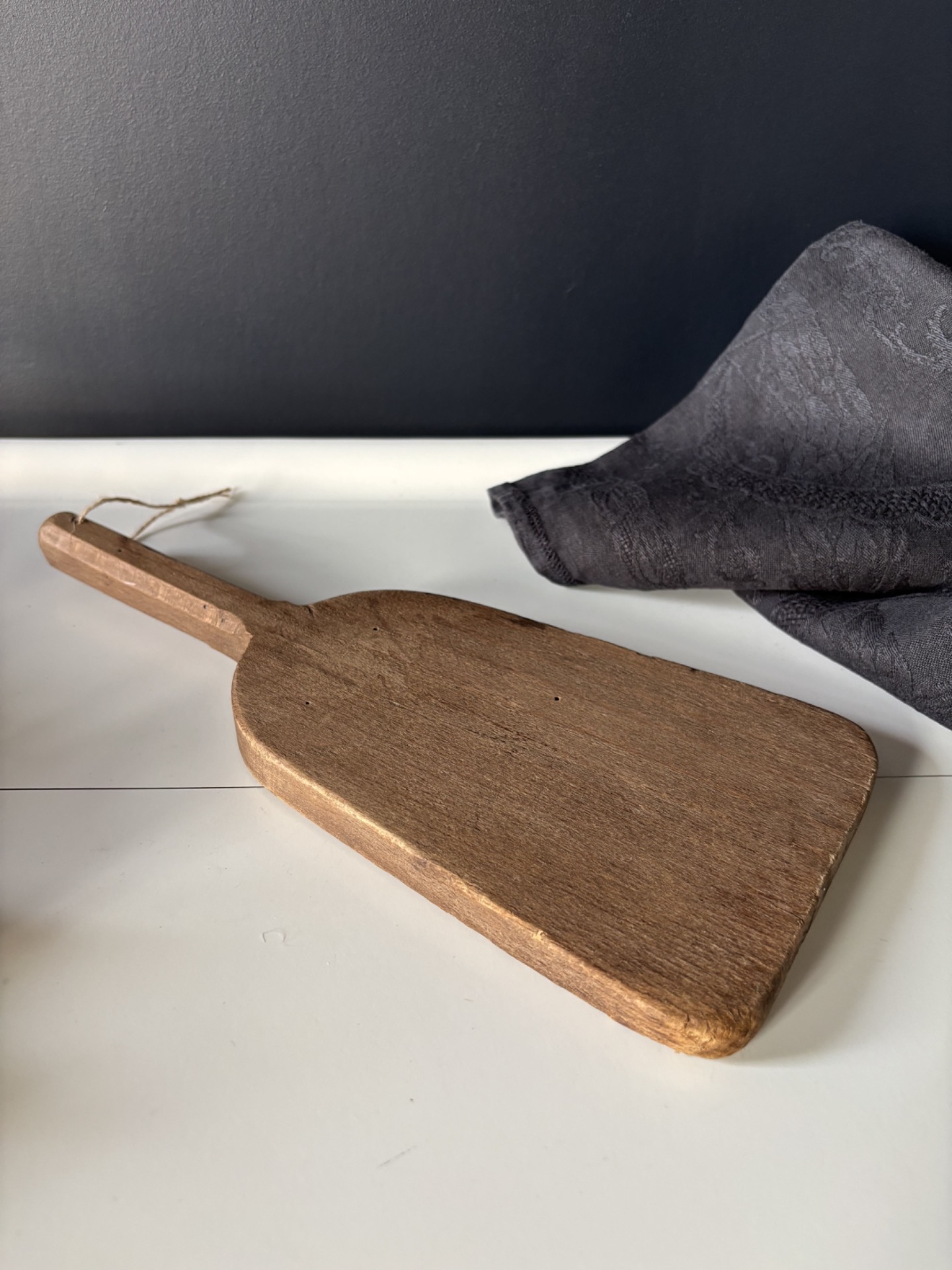 Ancien battoir à linge détourné en petite planche à découper en bois, au style rustique et authentique.