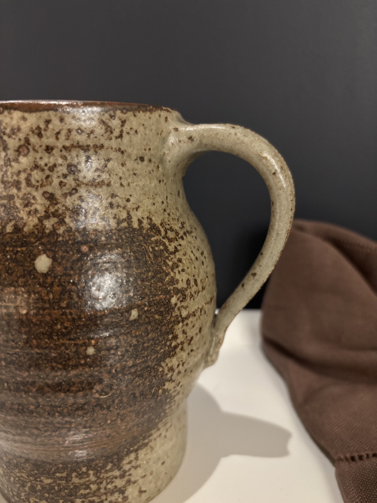Pichet en grès pyrite à la silhouette généreuse et bien équilibrée.