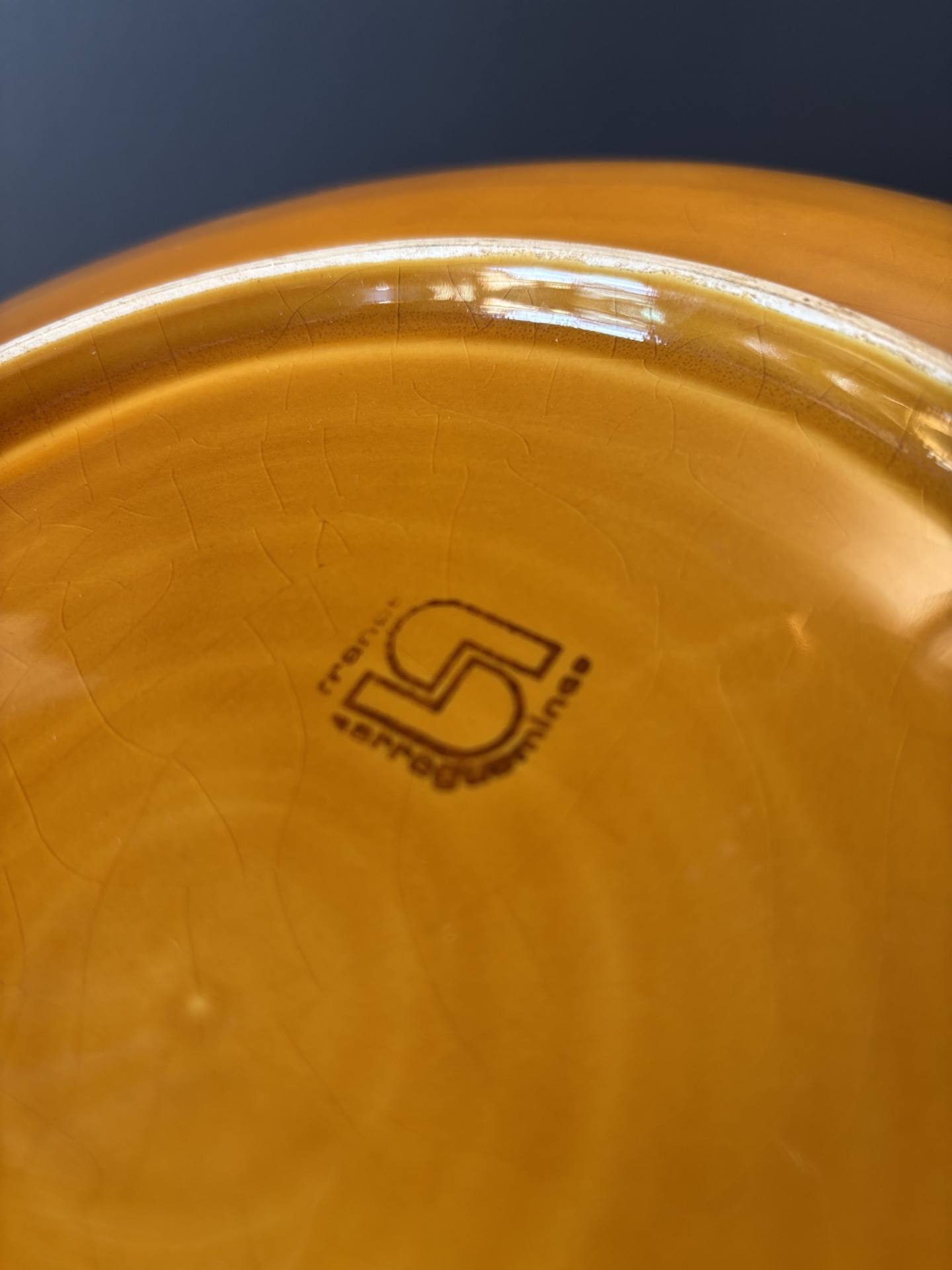 Ce modèle typique de la fin du XIXᵉ siècle séduit par ses couleurs profondes et son travail artisanal détaillé, emblématique du savoir-faire de la maison Sarreguemines.