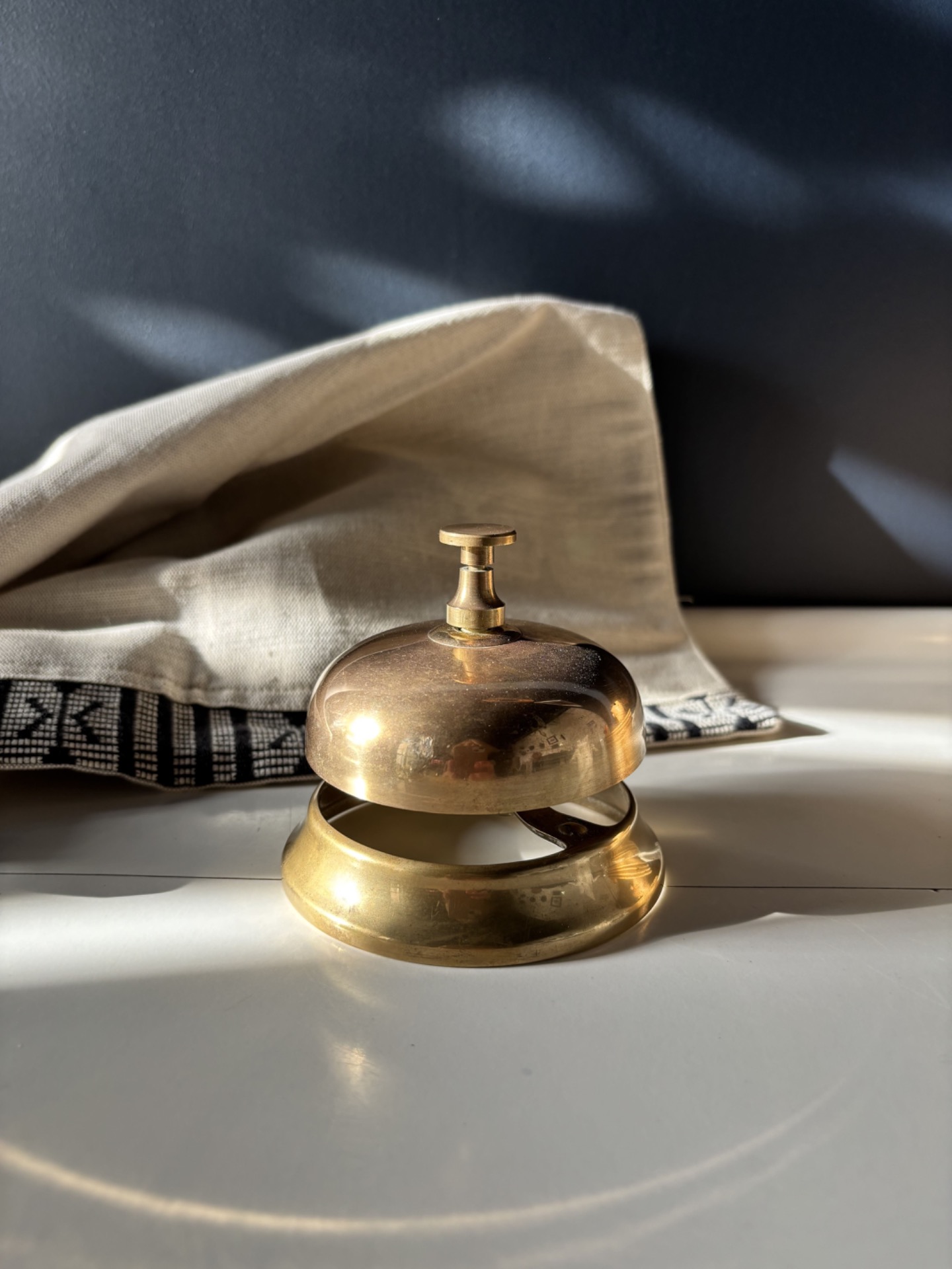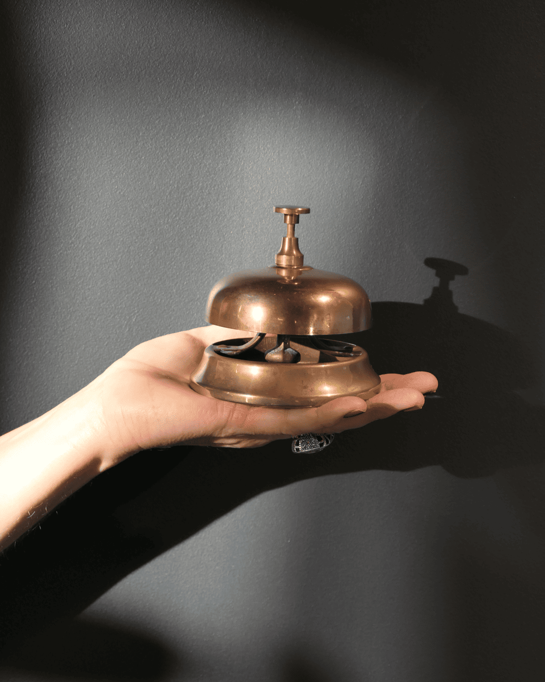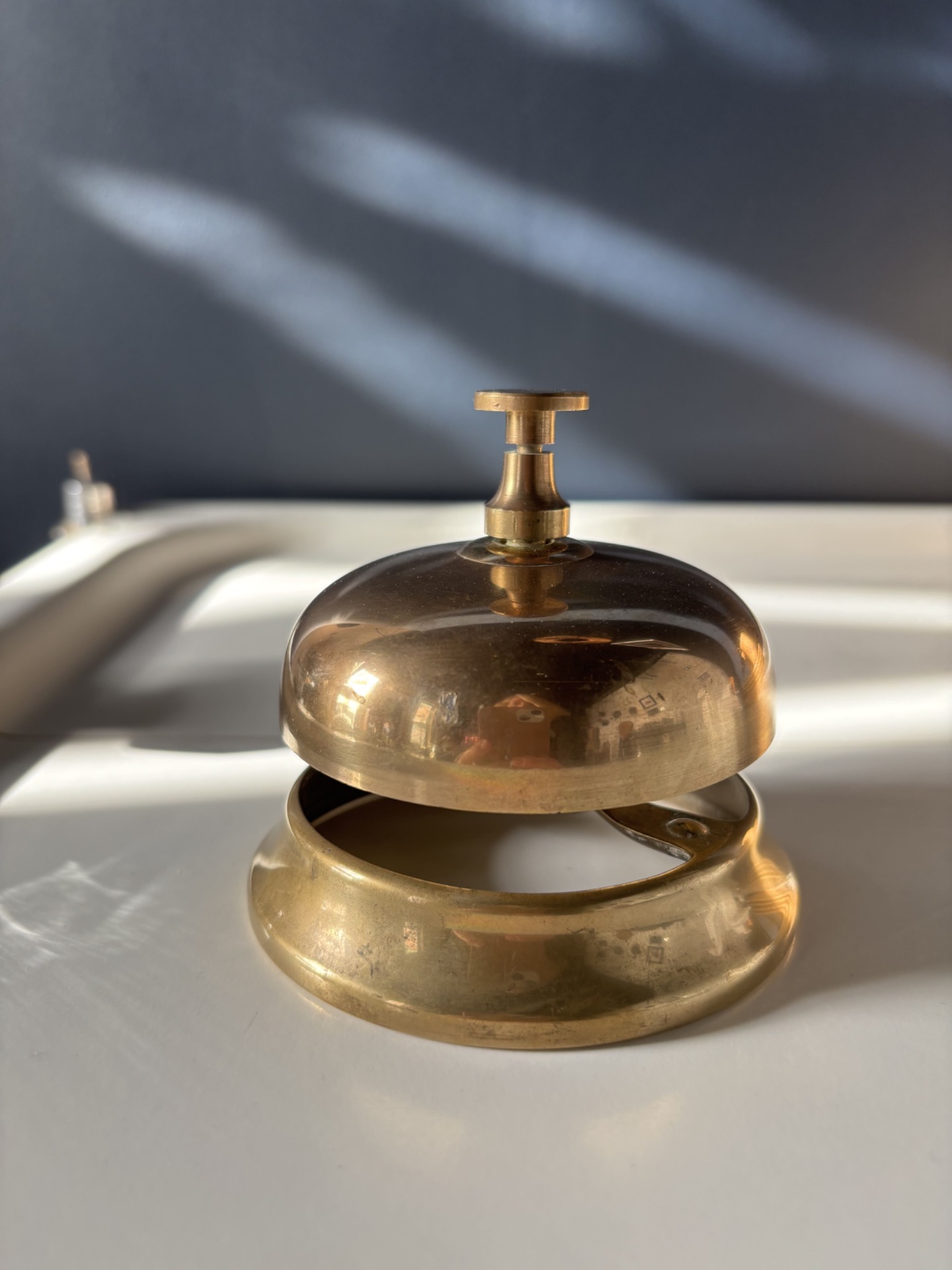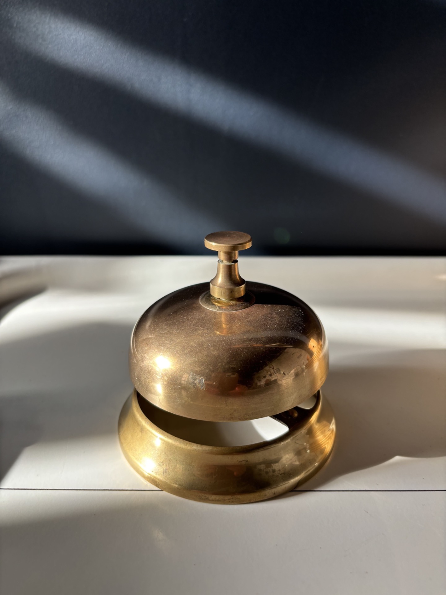 Sonnette de comptoir vintage en laiton, à la fois fonctionnelle et singulière.